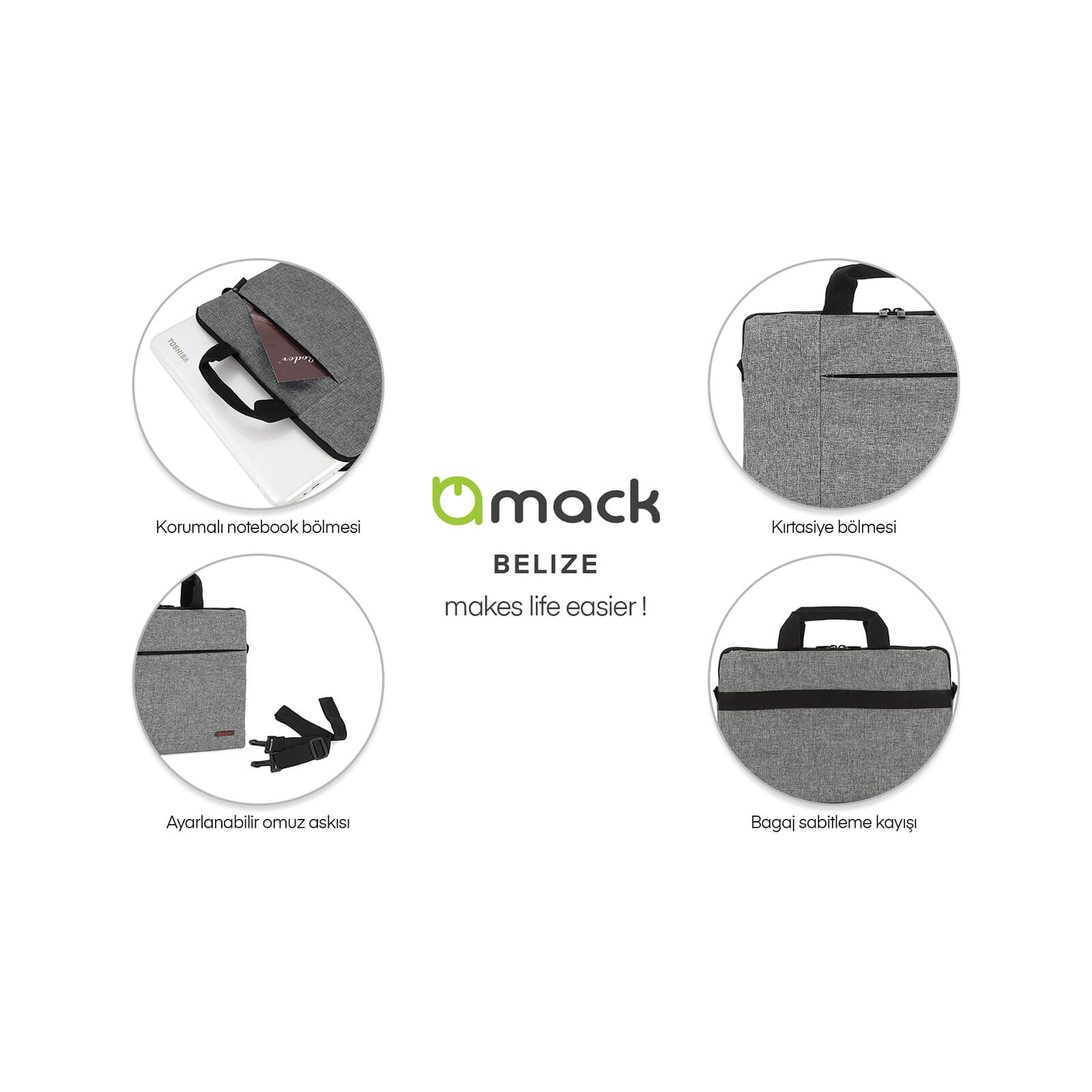 MACK MCC-202 15.6 BELIZE Notebook Çantası Gri