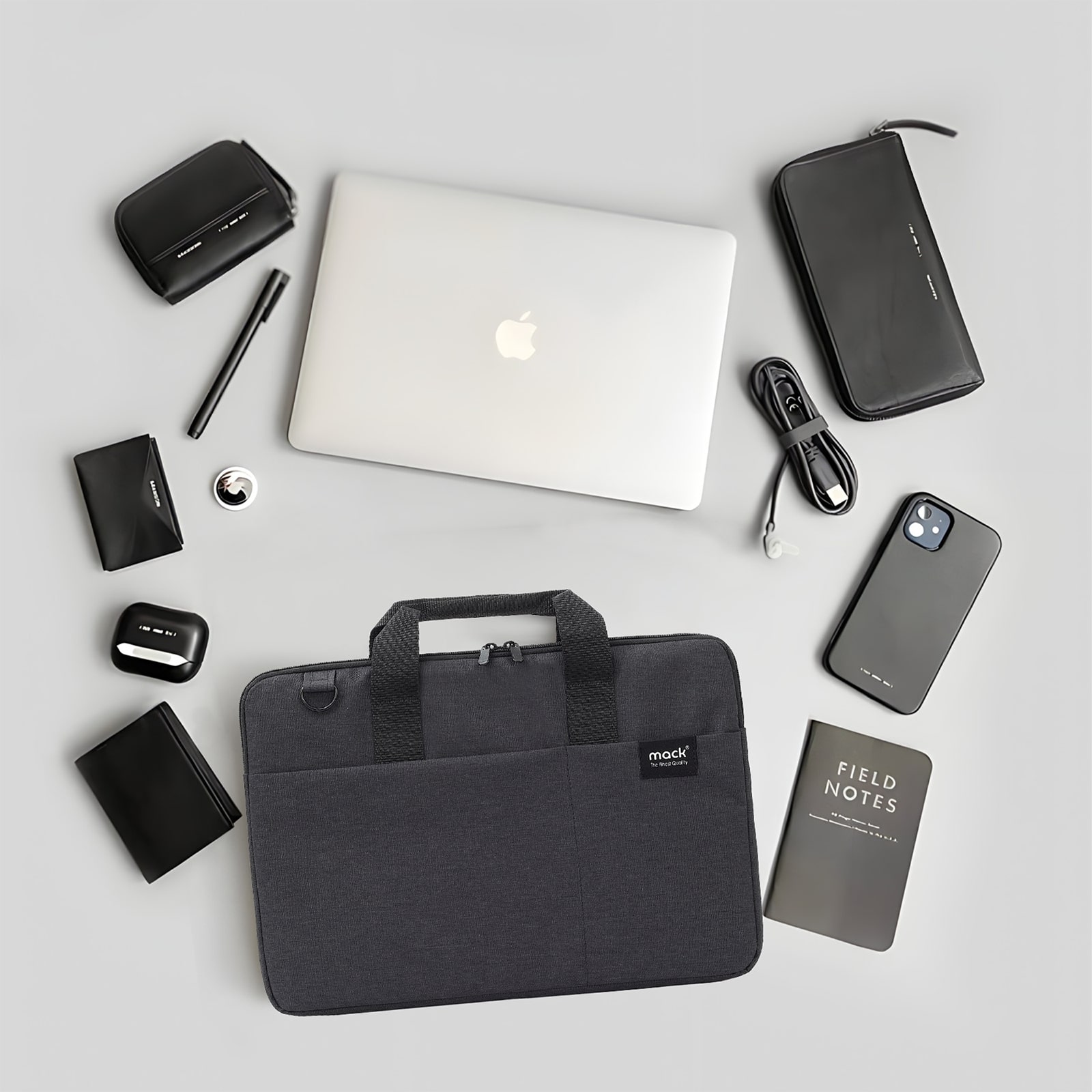 MACK City Fit Eco MCC-703 Çevre Dostu Laptop Çantası, Su Geçirmez Notebook Çantası, MacBook Air/Pro ile Uyumlu Bilgisayar Çantası, Erkek Kadın 14.1 inç Notebook El Çantası, Siyah