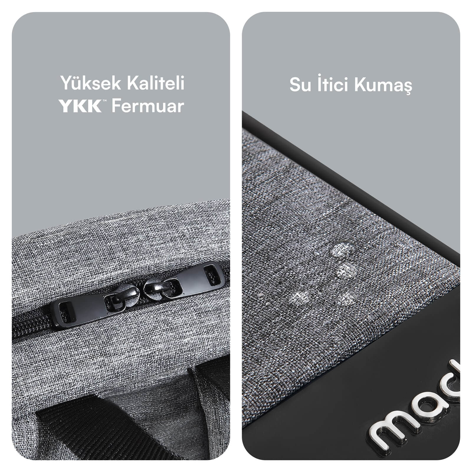 - Çevreci ve Kaliteli Malzeme: Laptop çantası, çevre dostu geri dönüştürülmüş su itici kumaştan üretilmiş ve yüksek kaliteli YKK fermuar ile donatılmıştır. Bilgisayar çantasının tüm bileşenleri Avrupa Birliği normlarına göre Türkiye’de üretilmiştir ve hiçbir zararlı madde içermez. Mack laptop çantaları ile bilgisayarınızı korurken aynı zamanda çevreyi de koruyun.