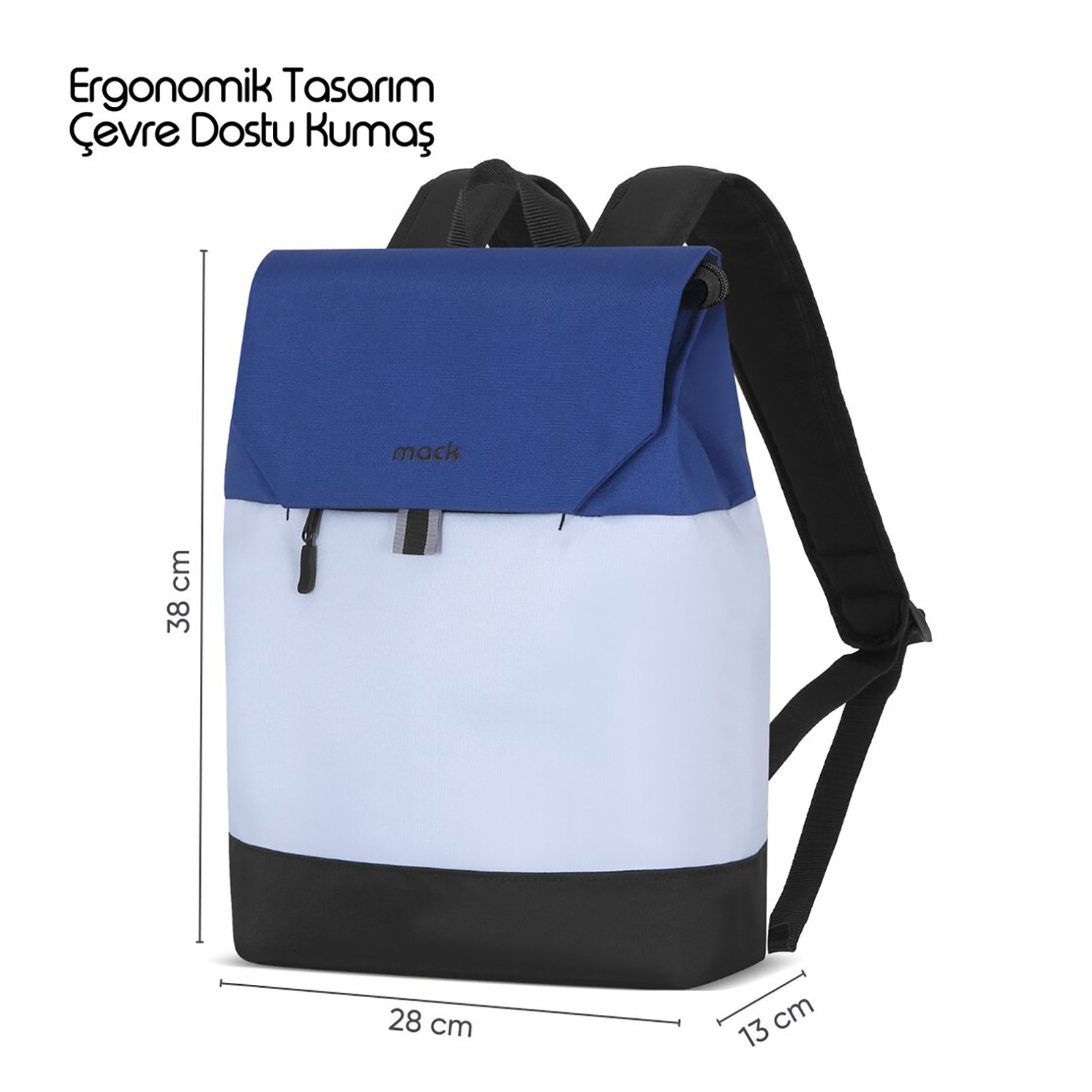 Mack Zen Eco MCE-1303 Sırt Çantası - Macbook Çantası, Hırsızlığa Karşı Koruma, Küçük, Mini, 13-14 inç Laptop, Günlük ve İş Kullanımı, Şık Tasarım, Üniversite ve Okul İçin, Mavi Gri