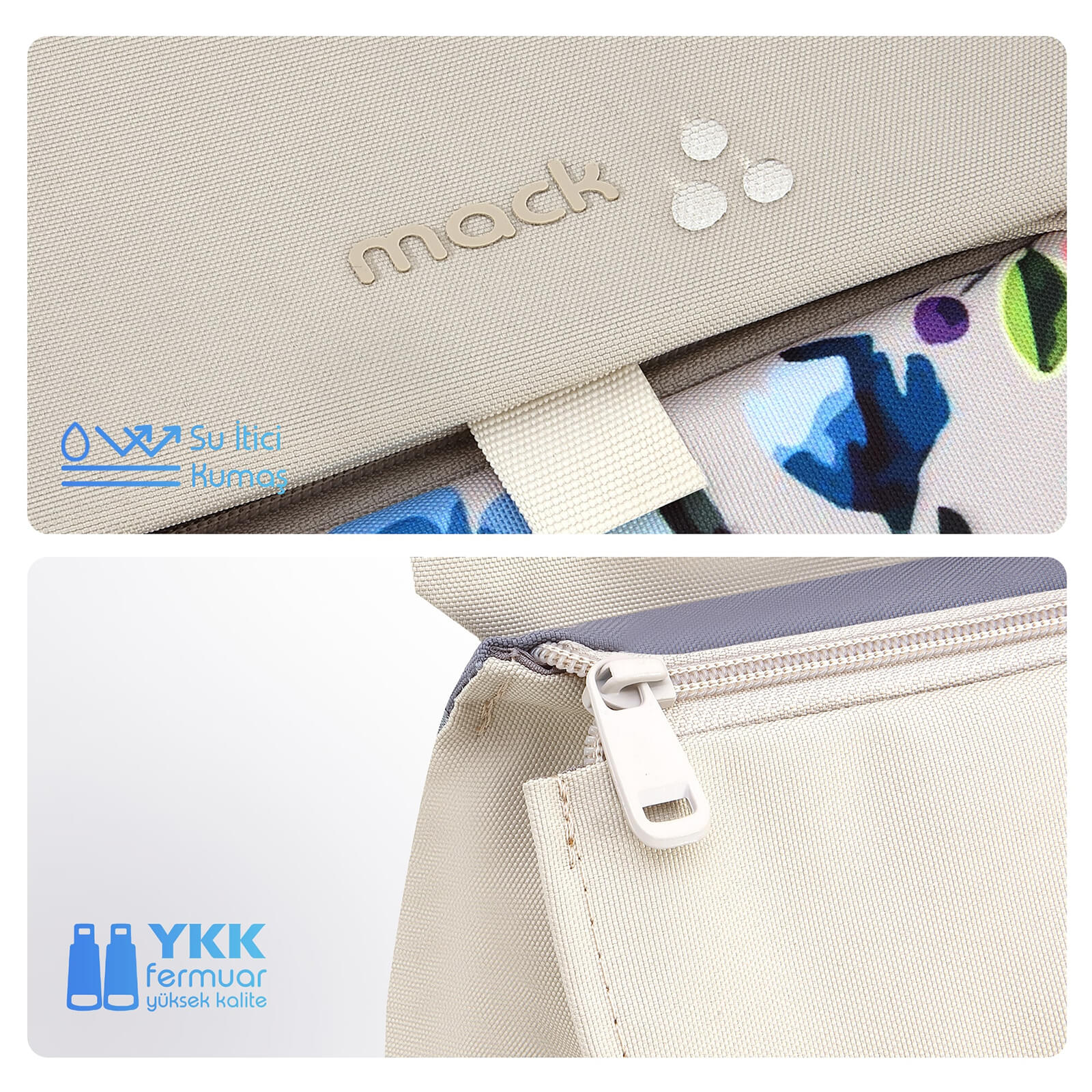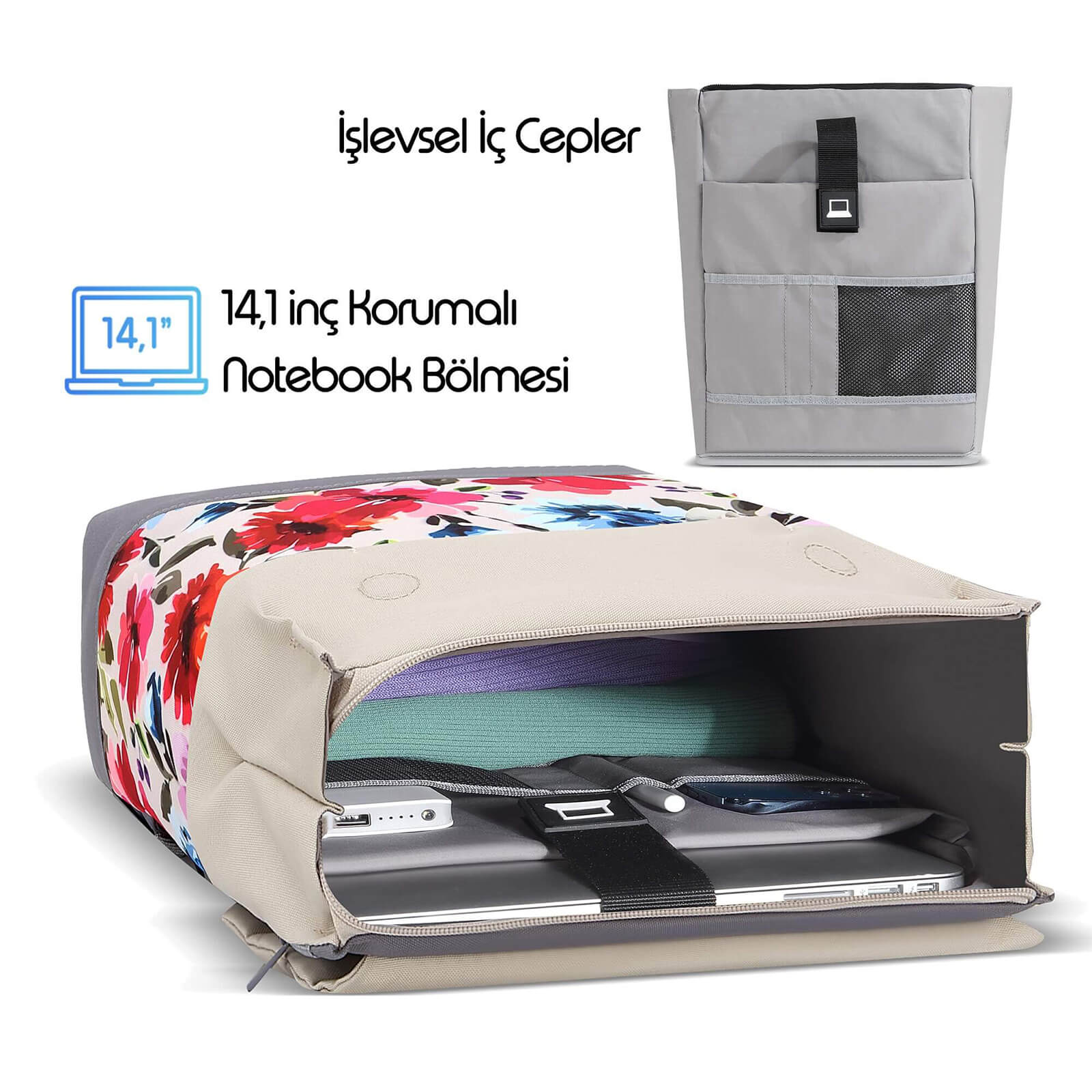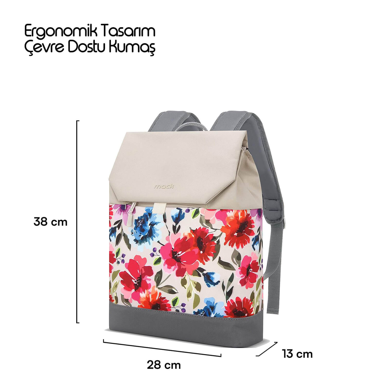 Mack Zen Eco MCE-1306 Sırt Çantası - Macbook Çantası, Hırsızlığa Karşı Koruma, Küçük, Mini, 13-14 inç Laptop, Günlük ve İş Kullanımı, Şık Tasarım, Üniversite ve Okul İçin, Bej Çiçekli