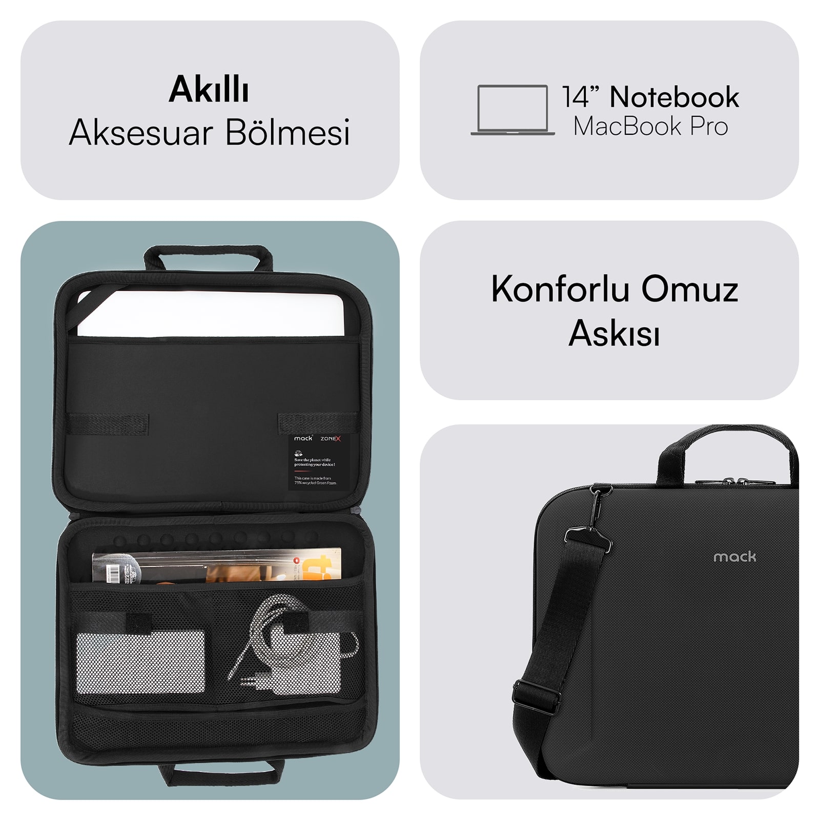 Çok Yönlü ve Rahat Taşıma: MacBook Pro 13"&14" ve MacBook Air 13"&14" ile uyumlu; ayarlanabilir omuz askısı ve dayanıklı tutma sapı sayesinde ister elde ister omuzda rahat taşıma imkanı.