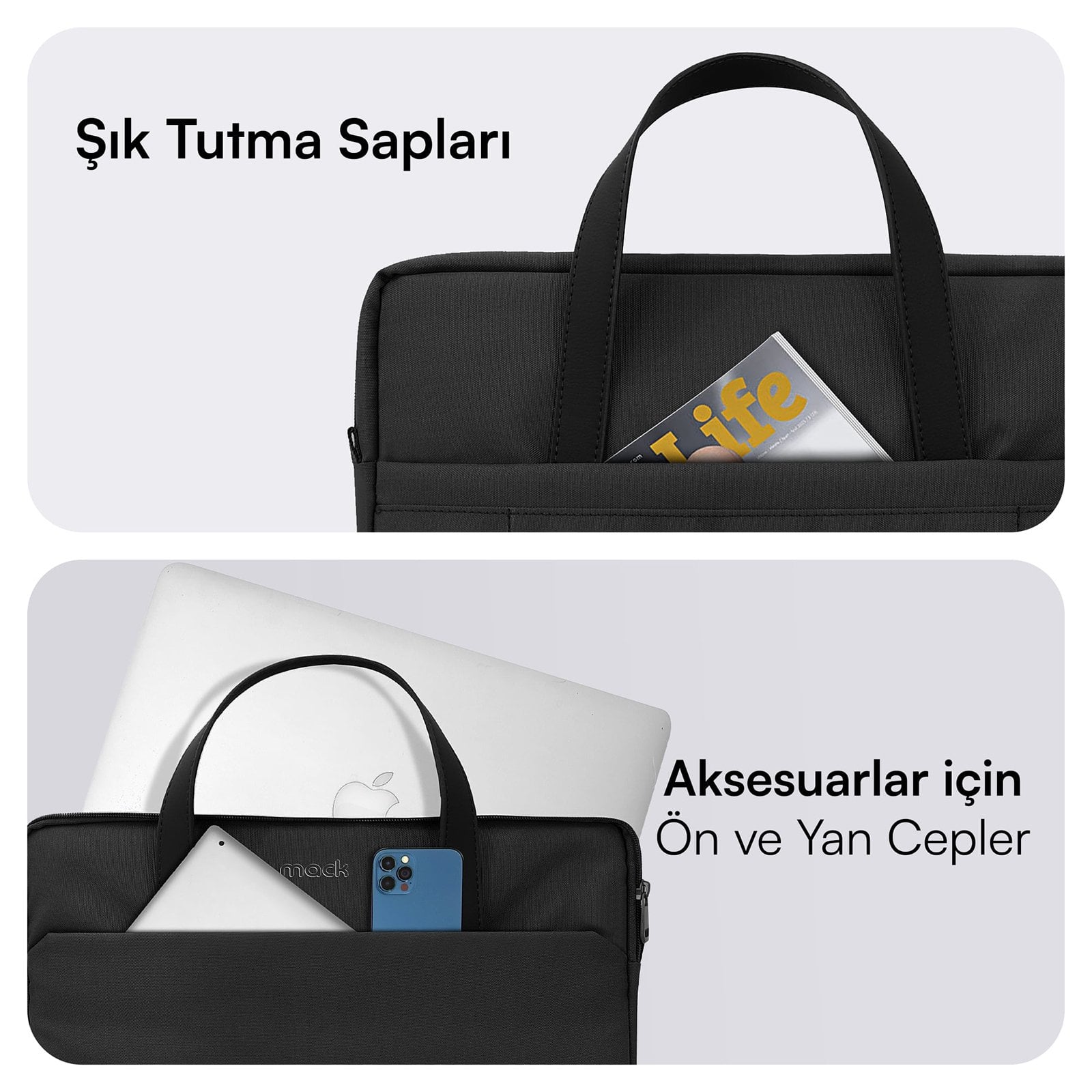 MACK MCE-1511 Nova Eco Çevre Dostu Laptop Çantası, 15.6 inç Bilgisayar Çantası, Kadın ve Erkek Notebook Çantası, YKK Fermuarlı Macbook Çantası, İş ve Evrak Çantası, Siyah
